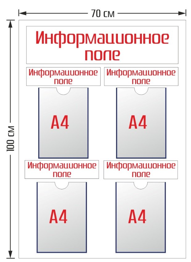 Ниже приведены примеры самых популярных стендов. Справа от изображения стенда указаны размеры и описание. На изготовление любого из этих стендов нам требуется не более 3 дней.