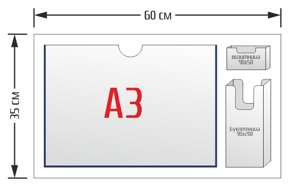 - одна акриловая объемная буклетница, вмещающая до 50 буклетов А4/3 20х9,5 см